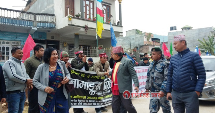 नेवा: तामसालिङ समन्वय समिति लगायत आदिबासी जनजाती महासघ र जातीय सस्थाहरुले प्रदेश सभा भवनको अगाडी गरिएको प्रदर्शनमा प्रदेश ३ को आन्तरिक मामिला तथा कानुन मन्त्री शालिकराम जमरकट्टेल, प्रदेश संसदहरु: नेवा: ताम्सालिङ नामकरणको प्रस्ताबक ओमबहादुर ग्लान, रत्न ढकाल, राजन दहाल, बिनोद खडका, कुमारी मोक्तान, प्रेमबहादुर पुलामी लगायत प्रदर्शनमा हौसला बढाउदै प्रदर्शनमा सहभागीहरु संगै कुराकानी गर्दै उहालेहरुले सदनमा पहिचान सहितको नामकरणको सवालमा जोडदार माग गरिएको दृढ बिश्वास ब्यक्त गर्नु भएको छ ।