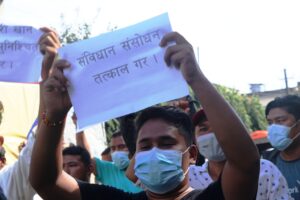 प्रर्दशनमा सहभागिहरुले ‘संवैधानीक विभेद खारेज गर, प्रहरी दमन बन्द गर, झुट्टा आरोप खारेज गर, विना सर्त रिहा गर, झुटो आरोप लगाई फसाएका निर्दोष व्यक्तिहरु अबिलम्ब रिहा गर’ लगायतका प्ले कार्ड बोकी शान्तिपूर्ण र्याली सहित प्रदर्शन गरेका थिए ।