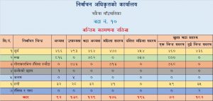 एमाले उम्मेदवारले ४ सय ६६ मत प्राप्त गरे । विजयी वडाध्यक्ष वाईवा यसअघिको स्थानीय तहको निर्वाचनमा नेपाली कांग्रेसको तर्फबाट गाउँपालिका उपाध्यक्षमा पराजित भएकी थिईन् ।