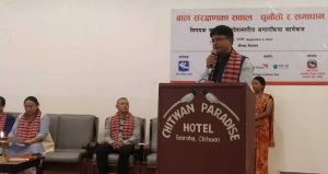 शनिबार चितवनको सौराहामा बाल बिकास समाज काठमाण्डौले आयोजना गरेको बाल संरक्षणका सवाल: चुनौती र समाधान सम्बन्धी बागमती प्रदेश स्तरीय अन्तरक्रिया कार्यक्रममा मन्त्री मोक्तानले बालबालिकाको सचेतनाको लागि प्रदेश सरकारले ठोस कार्यक्रम ल्याएको बताउनुभयो ।