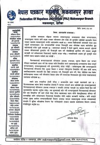 प्रेस कार्ड दुरुपयोगकाे घटनाप्रति पत्रकार महासंघ मकवानपुरकाे ध्यानाकर्षण