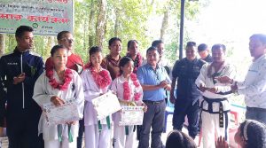 शनिवार राक्सिराङ (आई.टि.एफ) तेक्वान्दो दोजाङको पहिलो बार्षिक साधारण सभा तथा पदक वितरण कार्यक्रममा उपस्थित अतिथिहरुको गलामा गाउँमै फूलेका मखमली, लाउरे फूल र बाह्रमासे फूलका रंगीचंगी मालाहरुले सजिएका थिए । ब्याचमा हरियो पिपलको पातमा सेता टिपेक्सले लेखिएका अक्षरहरु र अतिथि सत्कार गर्दै लगाइएको रंगिन फूलका मालाहरुले अझ शोभा थपिएको थियो ।
