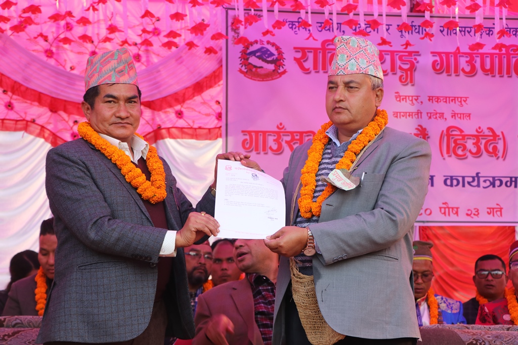 पौष, हेटौडा (राक्सिराङ्ग) – मकवानपुरको राक्सिराङ गाउँपालिकाको १५ औ हिउँदे अधिवेशन सम्पन्न भएको छ । गाउँपालिकाको केन्द्र चैनपुरमा भव्य कार्यक्रमका बीच आयोजित अधिवेशनमा बागमती प्रदेशका मुख्यमन्त्री शालिकराम जमकटेलसहित सो क्षेत्रबाट निर्वाचित सांसदहरुले सहभागिता जनाए ।