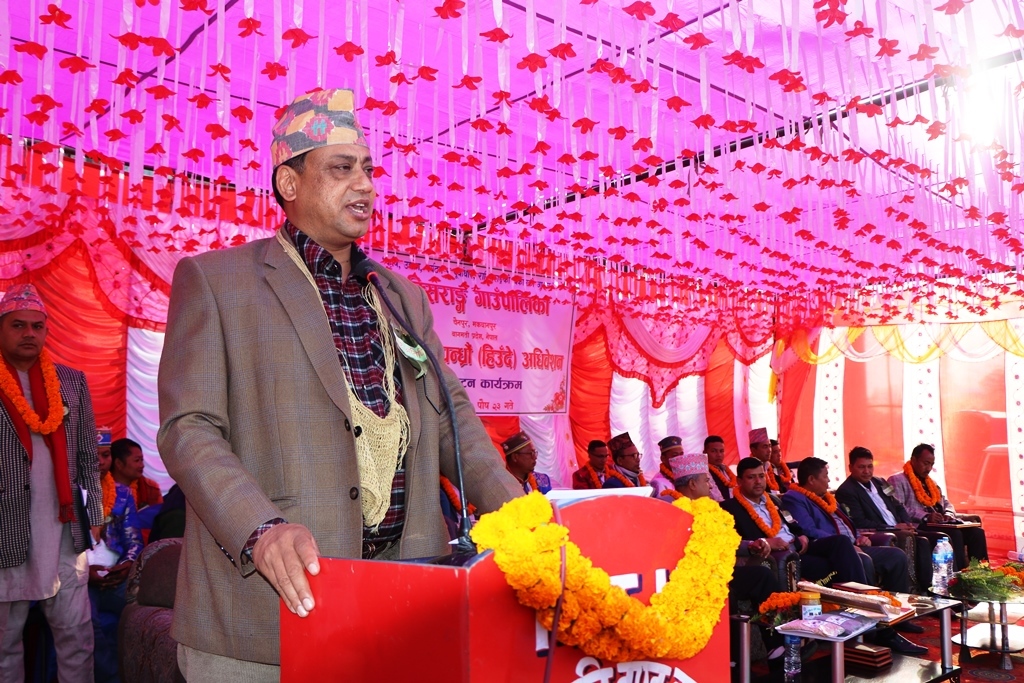 दश बीस लाख, बीस पचास लाखको योजना हामी गर्छौ: मुख्यमन्त्री जमकटेल, प्रतिनिधिसभा सदस्य बर्तौला र प्रदेश सभा सदस्य बाँनियालाई अगाडी राखेर उहाँले भन्नुयो, करोड करोडका दिर्घकालीन योजनाका लागि प्रदेश र केन्द्र सरकारले बजेट विनियोजन गरिदिनोस । उहाँले जमकटेल, बर्तौला र बाँनियालाई छुट्टाछुट्टै योजनासहितको मागपत्र समेत बुझाउनुभयो ।