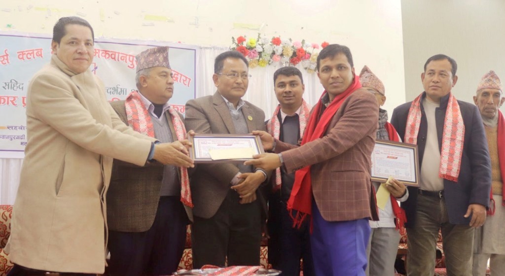 क्लबका अध्यक्ष बलराम पुडासैनीको अध्यक्षतामा मंगलबार हेटौंडामा भएको कार्यक्रममा पत्रकार शर्मा र न्यौपानेलाई जनही ८ हजार ८ सय ८८ राशीको उक्त पुरस्कार प्रदान गरिएको हो ।