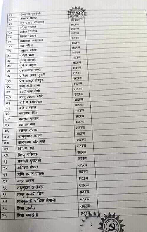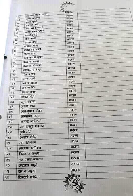 नेकपा मकवानपुरको जिल्ला कमिटिका सदस्यहरुको नामावली: