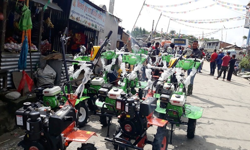 कृषिमा यान्त्रिकरण स्वच्छ शिक्षित एवं संमृद्ध कैलाश कृषि पर्यटन र पूर्वाधारको योजनाबद्ध बिकास गर्ने अभियान अनुरुप गाउपालिकाको आर्थिक वर्ष २०७५/०७६ को स्वीकृत कार्यक्रम अनुसार गाउँपालिकामा भित्र गठन भएका कृषक समुहहरुको माग अनुसार वितरण गरिएको गाउँपालिका अध्यक्ष टंक मोक्तानले बताउनु भयो ।