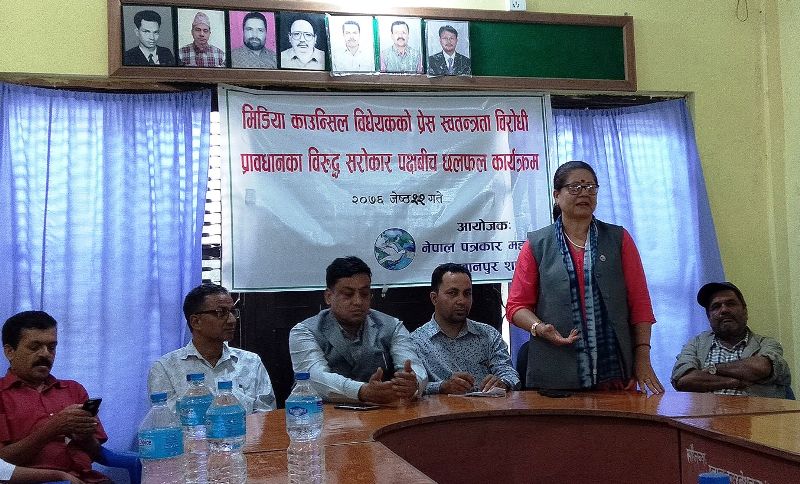 त्यस्तै, नेकपा मकवानपुरका अध्यक्ष तथा तिन नम्बर प्रदेशका सांसद मुनु सिग्देलले सरकारले विधेयकलाई सच्याएरमात्र लैजानुपर्ने बताईन् । संसदमा पेस भएको बिधयक जस्ताकोतस्तै पास नहुने बताउदै पत्रकारितालाइ मर्यादित वनाउने जिम्मा पत्रकारहरुको रहेको भन्दै राज्यले पनि पत्रकारहरुलाई अंकुश लगाउन नहुने बताए ।