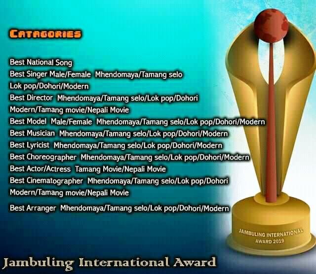 धादिङ, रसुवा, नुवाकोटमा प्रचलित म्हेन्दोमाया, नेपाली लोक दोहोरी, पप गीत, आधुनिक गीत र राष्ट्रिय गीतबाट गरि ५६ वटा बिधामा अवार्ड दिने भएको छ । उत्कृष्ट ५ भित्र पर्ने गीत, भाका, शब्द, गायक, गायिका, निर्देशन, स्वर, अभिनय देखि लिएर सबै क्षेत्रलाई समाबेश गरि अवार्ड दिने आयोजक जम्बुलिङ फिल्मसले जनाएको छ ।