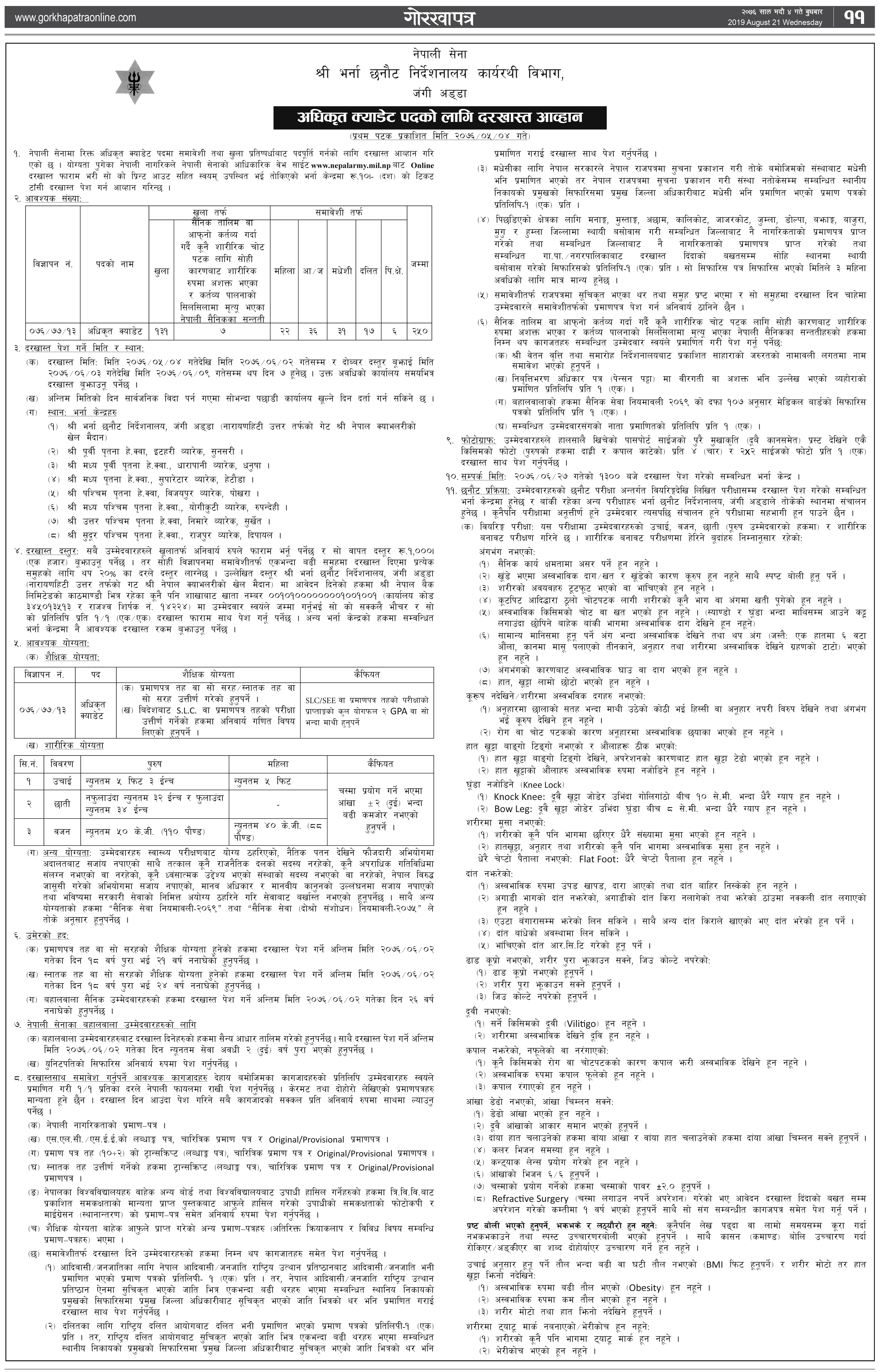 नेपाली सेनामा सेकेन्ड लेफ्टिनेन्टको जागिर खुल्यो