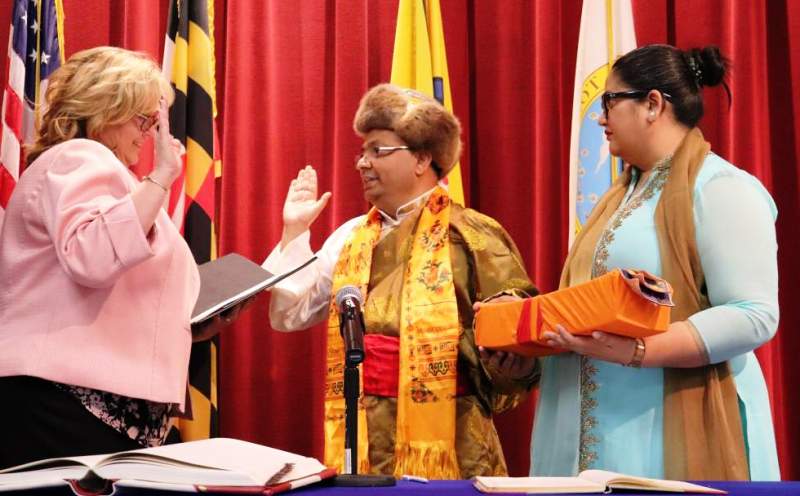 मेरिल्याण्डमा उपनगर प्रमुख सिटौलाद्वारा बुद्धधर्म ग्रन्थमा सपथ ग्रहण