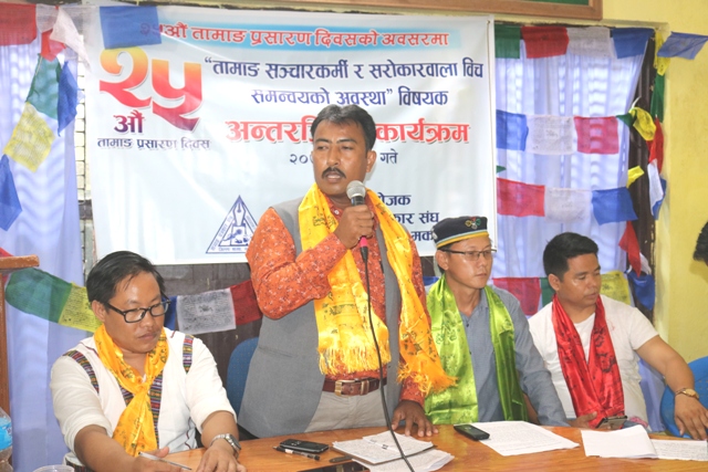 भदौ २७, काठमाण्डौ – तामाङ समुदायको साहित्यिक सस्था तामाङ डाजाङको १० औं अधिवेशन हुने भएको छ । शनिबार काठमाडौंको तामाङ घेदुङको सभाहलमा हुने अधिवेशनबाट नयाँ कार्यसमितिको चयन हुने अध्यक्ष सञ्चु व्लोनले बताउनु भयो । ‘तामाङ ग्योइ थेन ग्योइकाइदा छार्नलाइ ! तामाङ ब्रिखेन गिक तासि ब्राइ !’ नारा रहेको डाजाङले १८ वर्षदेखि साहित्यिक क्षेत्रमा कलम चलाउदै आएका छन् । डाजाङले प्रत्येक महिनाको अन्तिम शनिबार साहित्यिक कार्यक्रम गर्दै आइरहेका छन् । शनिबारको अधिवेशन सँगै १८९ औं ग्योइकाइ गेताङ समेत हुने अध्यक्ष व्लोनले बताइन् । संस्थाले १७ वर्षदेखि तामाङ डाजाङ मासिक पत्रिका...